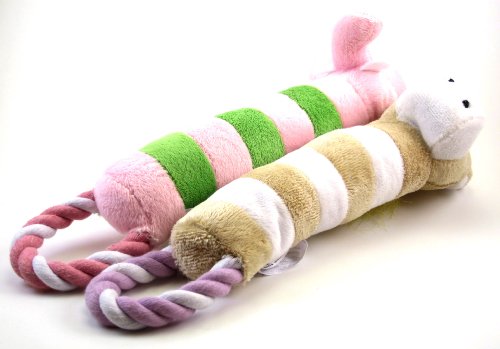This set of plush toys are perfect for your lovely dog. Each of the toy includes a rope handle at the end for interactive play. It also includes an internal squeaker that every dog loves.